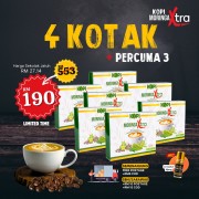 KOPI MORINGA XTRA - 4 KOTAK + PERCUMA 3 KOTAK + GIFT 1x KASTURI KIJANG