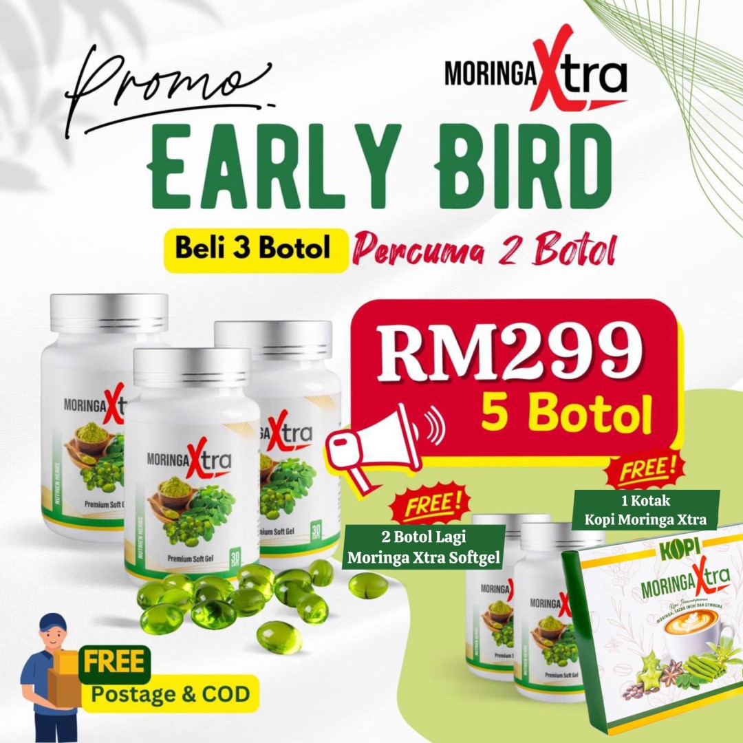 MORINGA XTRA SOFTGEL - BELI 3 BOTOL + PERCUMA 2 BOTOL & 1 KOTAK KOPI MORINGA XTRA